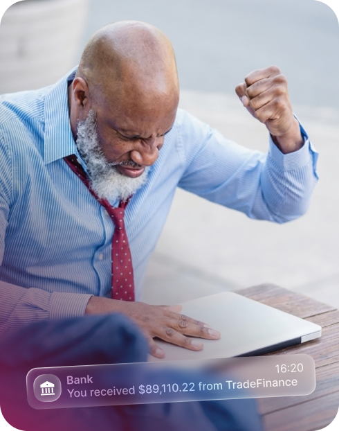 The TradeFinance platform is built on AI and automation, empowering you to onboard your customers and request funding for their invoices anytime. Skip the endless back-and-forth and piles of paperwork for efficient early payments.